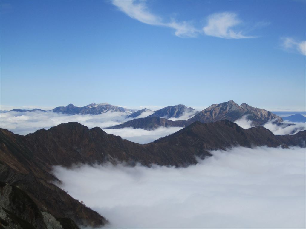 針ノ木岳山頂から白馬岳を望む。稜線が美しい。