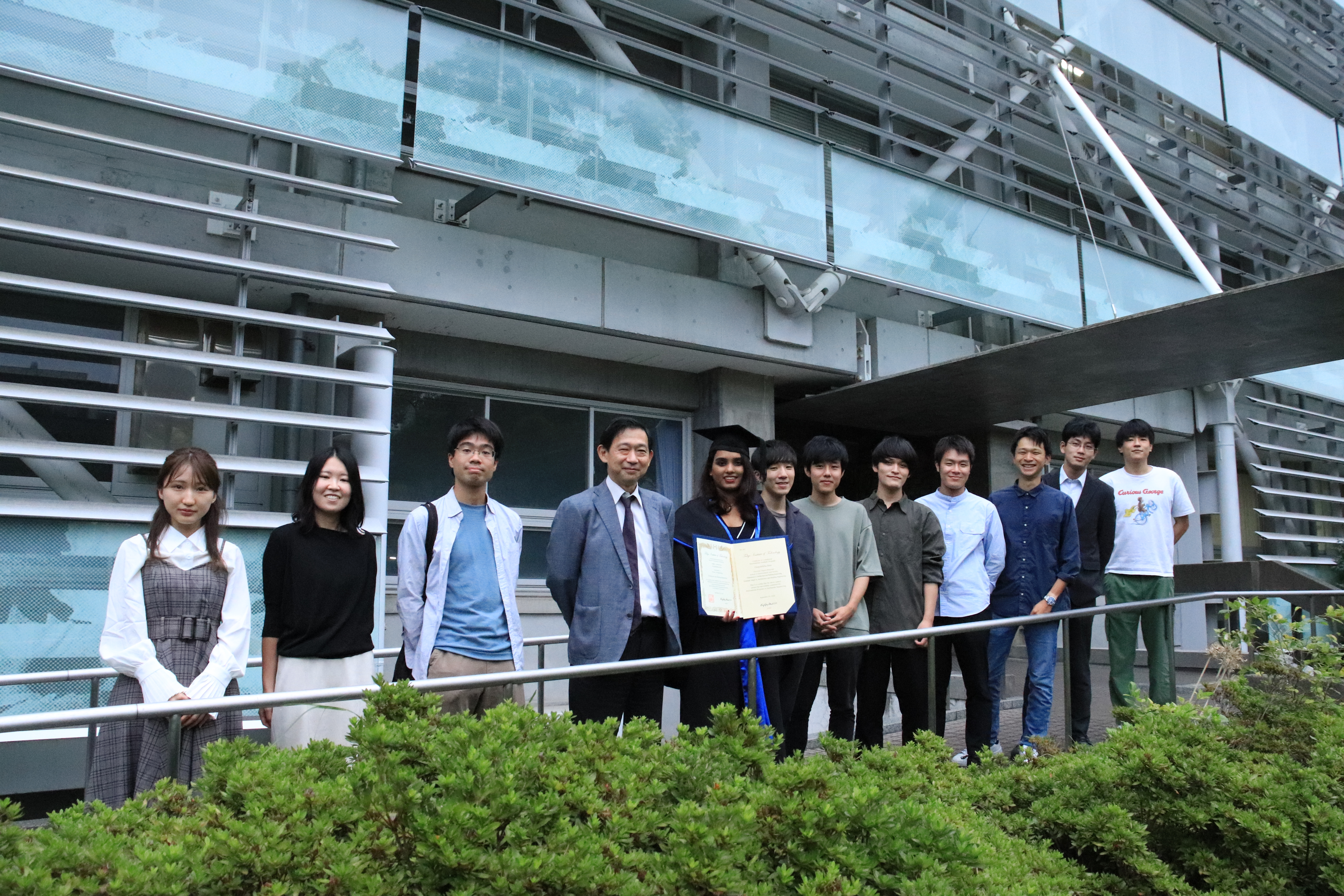 緑が丘一号館前にて