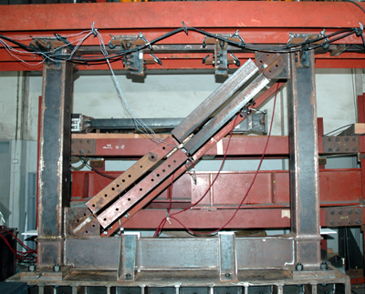 接合部であるガゼットプレートの回転剛性を求める実験です。