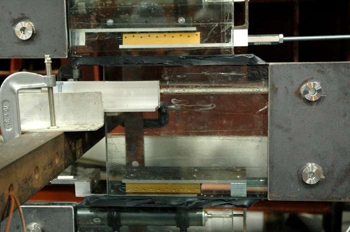 ガラスとシーリング材からなる試験体を振動台で加振し、